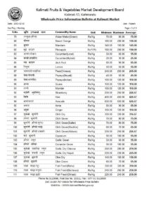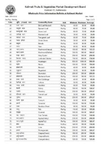 बन्दा (नरिवल) प्रतिकिलो १५ रुपैयाँ, काउली (स्थानीय) प्रतिकिलो २५ रुपैयाँ, स्थानीय काउली (ज्यापु) प्रतिकिलो ३० रुपैयाँ, मूला रातो प्रतिकिलो ४० रुपैयाँ, मूला सेतो (लोकल) प्रतिकिलो २० रुपैयाँ, सेतो मूला (हाइब्रिड) प्रतिकिलो २५ रुपैयाँ कायम गरिएको छ ।
