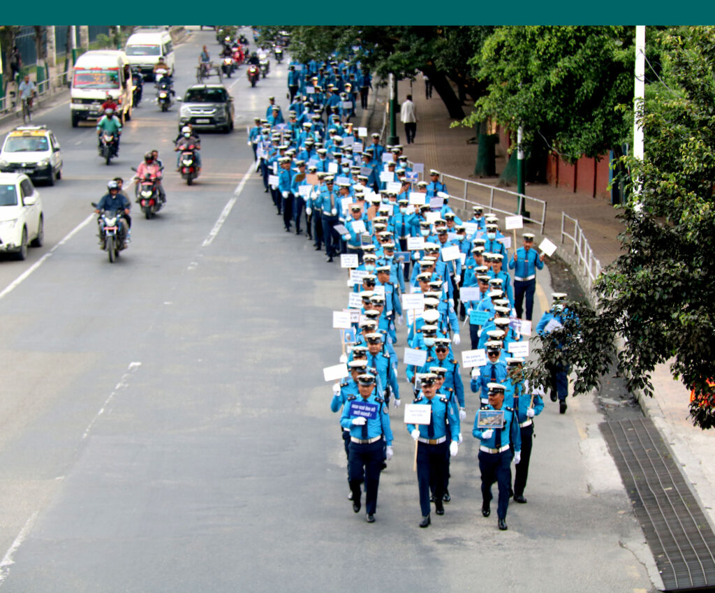 काठमाडौं। ट्राफिक प्रहरीले चाडपर्व लक्षित सुरक्षा सचेतनाको लागि संयुक्त ट्राफिक र्याली गरेको छ । आइतवार बिहान काठमाडौंमा चाडपर्व लक्षित सुरक्षा सचेतनाको लागि काठमाडौं उपत्यका ट्राफिक प्रहरी कार्यालय र काठमाडौं महानगर प्रहरी बलले संयुक्त र्याली गरेका हुन् । ¥याली कार्यक्रमपछि आयोजित कार्यक्रममा बोल्दै काठमाडौं उपत्यका प्रहरी कार्यालयका प्रमुख दानबहादुर कार्कीले नेपालमा सुशासन कायम हुुनुपर्ने बताउनुभयो।